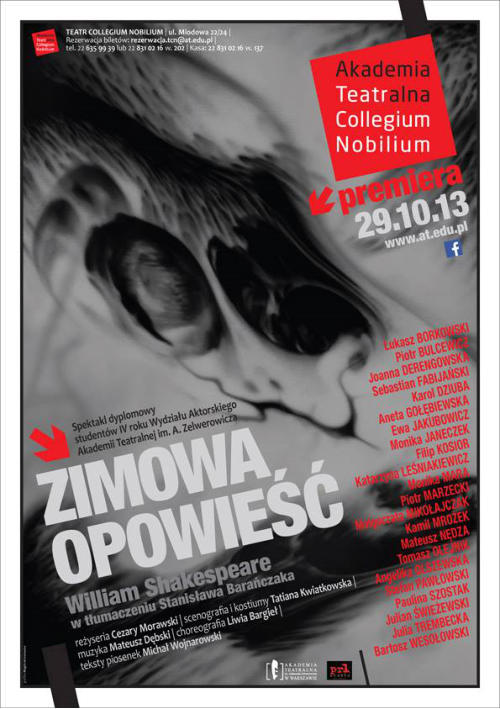 Zwycięski projekt grafiki do plakatu spektaklu dyplomowego studentów IV roku Wydziału Aktorskiego Akademi Teatralnej w Warszawie w reżyserii Cezarego Morawskiego.Premiera: 29 X 2013